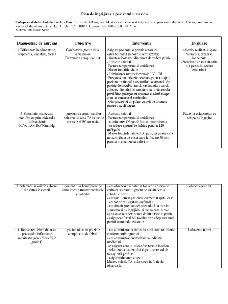 Referate oferite gratuit, lucrari si proiecte cu imagini si grafice. In urma acestor rezultate se transfera la sectia ati a spitalului. Aceste tipuri de tratamente sunt denumite ingrijiri paliative. Ingrijiri paliative atat pentru pacientii cu diferite simptome aparute in perioada de tratament curativ, adresat vindecarii bolii, cat si cei la care tratamentul curativ nu mai este eficient. Pacienta dependenta, atat prin varsta cat si datorita bolii are nevoie de ingrijiri si.
