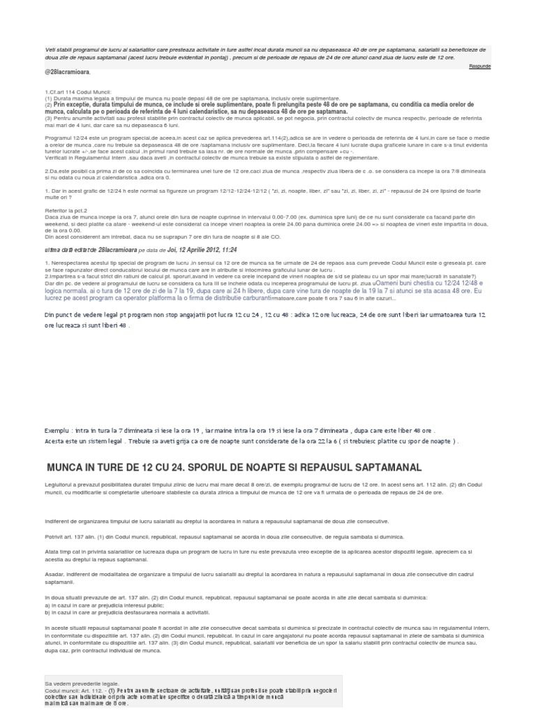 12/48 este posibila astfel incat. Codul muncii cim program de lucru repartizare dispozitie pontaj. Durata timpului de munca va ramane la 48 ore si in noul cod al muncii.
